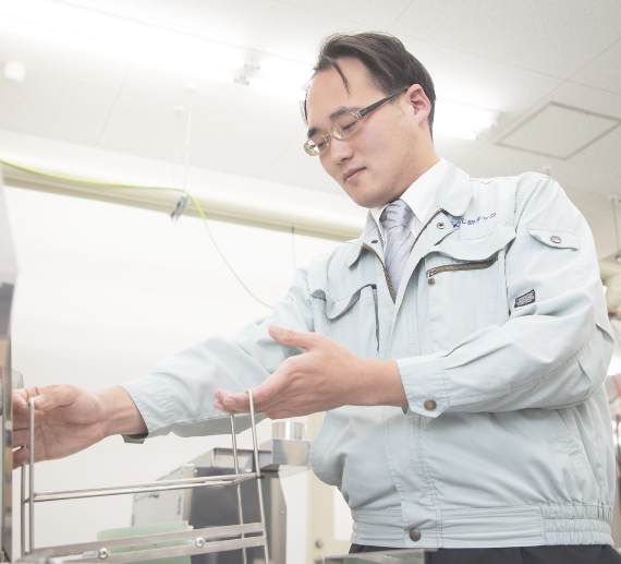 現在私はフラックス洗浄剤の新規開発を担当しています。従来の洗浄剤をブラッシュアップしたり、特定の企業様に向けて改良したりするのが主です。私自身が配合しつつ、お客様に提案を行うこともあります。 以前、私が開発した洗浄剤の一つが、当社にとって有効な戦力として注力される商品となりました。この洗浄剤は、私自身も3年以上の月日をかけて開発に努めてきたものでした。自分が開発したものに名がついて製品として世に出ることに加え、仕事仲間たちがその有用性を評価してくれるたび、感情が込み上げます。入社7年目にしてこのような評価を頂けるのも、先輩や社長が私の実力や能力を信頼し、早くから色んな研究に携わる機会を与えてくださったおかげです。 当社は1年目、2年目から色んな企画や研究の仕事に挑戦出来る環境があります。一つ一つ確かな結果を出していくと、周りの人たちも「これなら大きな仕事を任せても良いな」と判断して次のステップに進む機会を提案してくれます。 若い内から活躍を願う場合、存分に力を発揮でき尚且つ適切な評価を行う当社の環境は魅力になると思います。